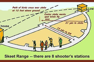 Skeet is shot in squads of up to five shooters. They move from station to station around the half moon, ending up in the center, at the end of the round.